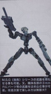 フレイムアーキテクト(可動素体)が組みあがった状態の商品です 機体各所に設けられた3mm系の接合部に外装を装着する方式で 以後発売される フレームアームズシリーズの組え変え MSGグッズの組み合わせで オリジナルロボット作成や 素体そのものを転用して 旧キットの可動モデル化等 自由度の高い小商品です |