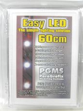 PGMS(パラグラフイックスモデルシステム) Easy LED 取付け簡単、使い勝手抜群な テープ型のLEDライト 切り取って取り付け可能。 煩わしい細かなはんだ付け作業や 面倒な抵抗の計算などを苦に思っていた モデラーにおすすめの逸品です。 SFキットにはもちろん、ロボットものや航空キットなど、 幅広く使える優れもの。 6Vから12Vで使用可能(乾電池で使用可能) 切り取って使用する場合は 5cm(LED3個分)単位で切り取ってください 30cm(6ユニット・LED18個)タイプ \1890 60cm(12ユニット・LED36個)タイプ \2940 付属する部品は基盤・白色チップLED・チップ抵抗のみです。 取り付ける際の電気配線は各自で行ってください。 ライト裏に両面テープが貼ってあるので簡単に取付け可能 |